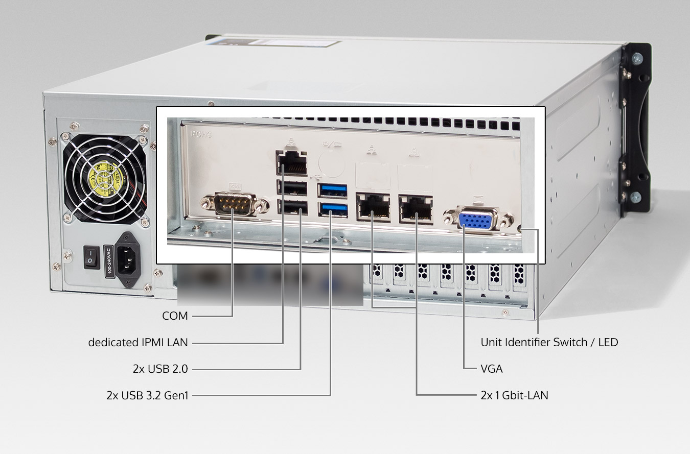 • bis Intel® Xeon® E-2488 mit 3,20 GHz (TurboBoost bis 5,60 GHz), 24 MB Smart Cache, 8 Kerne und 16 Threads